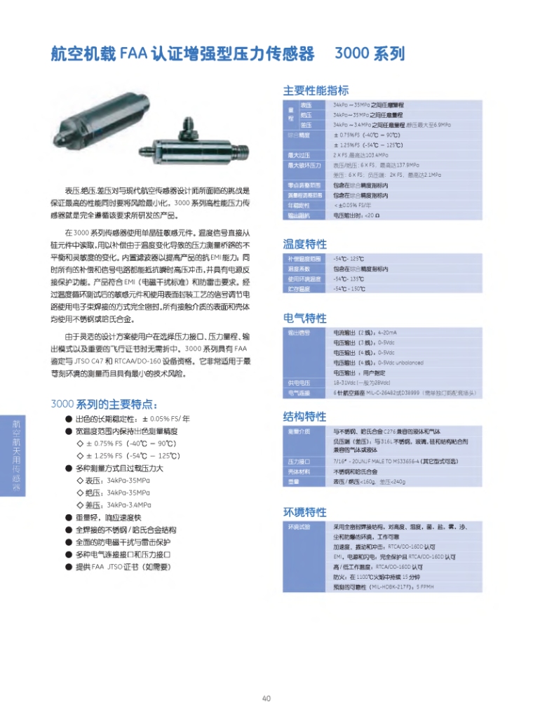3000型航空机载FAA认证增强型压力传感器