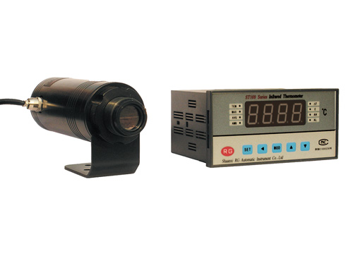 ST100系列红外测温仪由光学系统、光电探测器、信号处理电路、微型计算机、显示输出等部分组成。它集RS485、4~20mA输出、两组继电器输出、声光报警等功能于一体,具有测量精度高、响应速度快、操作简单、使用可靠等优点,可广泛应用于冶金、石油、化工、铁路、塑料、金属加工、节能等行业。