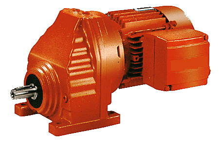 ◆ 平行输出、体积小、减速比小、输出转速快、能耗小、噪声低。 ◆ 底座式安装具有低中心高特点,输入轴与输出轴旋转方向相反。