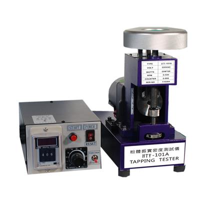HTY-101A粉体振实密度测试仪符合ISO、GB多项标准、符合美国药典要求,操作达到简化、振动频率可调、可装三种容积的刻度量筒、整机功耗低、长期工作稳定可靠。 HTY-101A粉体振实密度测试仪,使装有颗粒、粉末的刻度量筒固定在机械振动装置上,振动电机带动机械振动装置上下振动,振动频次由变频器控制,装有颗粒、粉末的量筒随机械振动装置而产生一定频次、一定幅度的振动。 随着振动次数的增加,量筒管里的颗粒或粉末逐渐振实,振动次数达到设定的次数后,机械振动装置停止振动,读出量筒颗粒或粉末的体积,根据密度的定义(即重量除以体积)从而求出振实后颗粒或粉末的密度。适用于粉末冶金行业,碳粉行业,焦炭石墨行业,磁材行业,生物制药行业,高新能原材料行业,塑胶行业,奶粉食品配料行业等,用于测量固体粉末、颗粒的振实密度。 HTY-101A粉体振实密度测试仪技术参数: