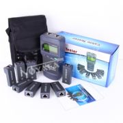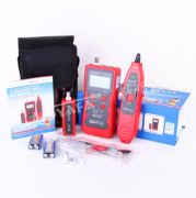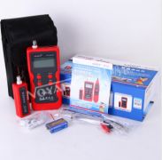 产品特性: 1.对网线进行PING测试, POE测试,串扰测试。 2.长度测量准确度高达99%。 3.2.8英寸彩屏, 人性化图标式设计。 4.测试线缆短路点的位置。 5.主机和接收器均是3.7V聚合物锂电池供电, 可重复充电。 6.端口闪烁功能,方便更直观。 功能描述: 1.测网线、电话线、BNC同轴线的短路,断路,交叉,反接,配对的连接情况。 2.用开路的方法测网线,电话线,BNC同轴线的长度。 3.长度测试时有存储,调出功能,方便线缆校正。 4.主机有存储160组测试数据及导出功能(TF卡选配)。 5.中英文语言切换,屏幕背景切换及明暗调节。 6.主机低电压提示及自动关机时间设定。