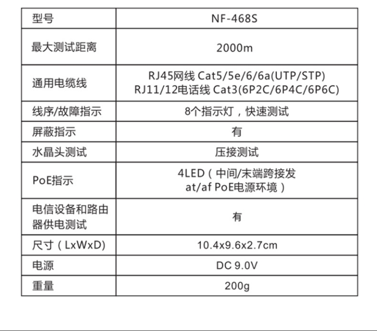 我对您的NF-468S测线仪网线电话线对线器产品感兴趣,请发具体的信息及报价,谢谢!