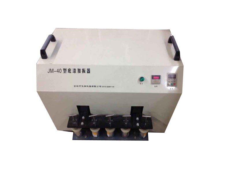 四、 技术指标 1、 转速范围:0~400次/分 2、 振荡幅度:40mm 3、 电源:220V±10 50Hz 4、 功率消耗:<1500w 5、 装瓶量:6个 6、 工作时间:连续 7、 定时:0-99.99小时 根据用户的不用需要,我厂生产的JM-40型底漆加振器,该品种尽量采用新材料、新技术、新工艺使产品面目一新,体积小、重量轻、使用方便。