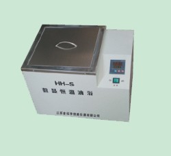 HH-S型数显恒温油浴,是在本厂HH系列水浴锅的基础上研制的新产品,加热温度高,可使容器中温度加热至300℃,适合于各种实验室,化验室作液体的几蒸发使用。 一 一、性能: 1、电源:220V 50Hz 2、加热功率:2500W 3、数显控温:室温~300℃ 4、不锈钢工作室尺寸:280×280×300mm