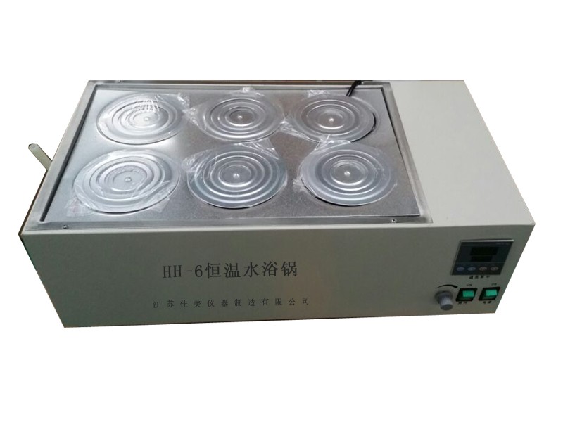 一、产品简介 HH-6数显恒温水浴锅(又称数显控温水浴锅、电子恒温水浴锅、电热恒温水浴锅),是辅助恒温加热实验仪器。集常规水浴锅之优点,内胆采用优质不锈钢板,外壳采用冷轧板静电喷塑,提高了整机的防腐能力,智能型温控仪,数显温度。广泛用于科研、院校等企事业单位实验室和化验室对各种化学样品、生物制品蒸馏、干燥、浓缩、浸渍、温渍,也可以用于水浴恒温加热以及其它温度试验。 其主要特点: 1、 工作水箱不锈钢成形,抗腐蚀性能强。 2、 温度精确,数字显示,自动控温。 3、 工作中水温均匀。