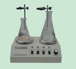 一、 HJ-2双联磁力加热搅拌器(又称二头磁力加热搅拌器、二工位磁力加热搅拌器),是在本所研制生产磁力加热搅拌器的基础上改进而成,是两台磁力加热搅拌器的合并,便于同时加热搅拌两种液体,可单独加热、单独使用,也可双联加热,双联使用。无级调速,操作简便,能在较广的速度范围内对液体溶液进行精密稳定的搅拌,特别适合搅拌小体积的样品,是石油、化工、医药卫生、环保、生化实验室、分析室、教育科研的必备工具。 二、 技术参数: 1、 调速范围:起动——2600转/分 2、 工作面直径:125mm×2 3、 加热功率:200W×2 4、 最大搅拌容量:500ml×2 5、外形尺寸:280×280×120mm 三、 使用方法: 1、请首先检查随机配件是否齐全,将装有溶液和搅拌子的试瓶(或其它器皿)放在工作面托盘上,当需要使用夹具时,应调整、校准夹具在立柱上的高度位置,并正确装夹。 2.接通外电源。 3.将相应的加热开关合上,对应指示灯亮,即为加热状态。