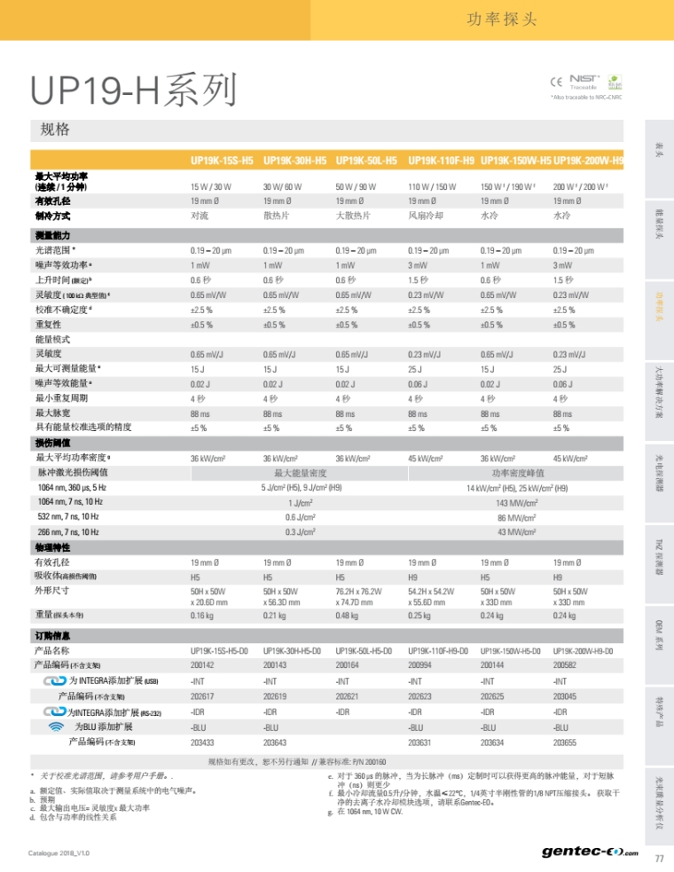 UP19K-15S-H5-D0-热电堆激光功率探测器