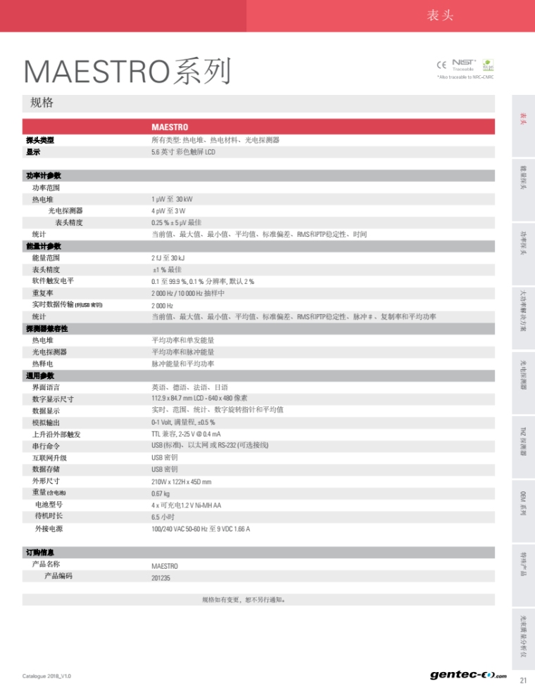 UP19K-30H-H5-D0-热电堆激光功率探测器