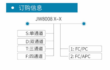产品特点 1) 高波长稳定性; 2) 任意波长可选; 3) 输出功率可调; 4) 多达 4 个独立输出口可选,; 5) 激光器一键关断/开启; 6) 提供内外两种调制模式; 7) 支持粗调/细调; 8) dBm/mW 单位可选; 9) 紧凑型小尺寸组件封装; 产品概述 JW8008 DWDM 光源采用激光器和温控组件,可根据温度输出对应波长,能满足客户多重需求,可实现单一波长的输出。是测量衰减变化范围大、要求功率和波长十分稳定条件下,科研和生产的理想仪表。适用于波分复用器件,广泛用于光通信、光传输、光纤传感等领域中的科研、生产和工程等领域。