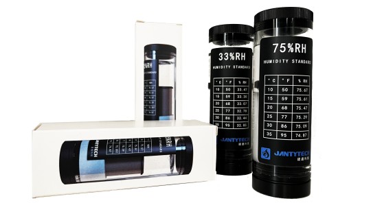 6种饱和盐溶液可选 JT8040-23/33/43/59/75/85提供6种饱和盐溶液选项,从23%~85%,适用于直径13~16mm的湿度探头