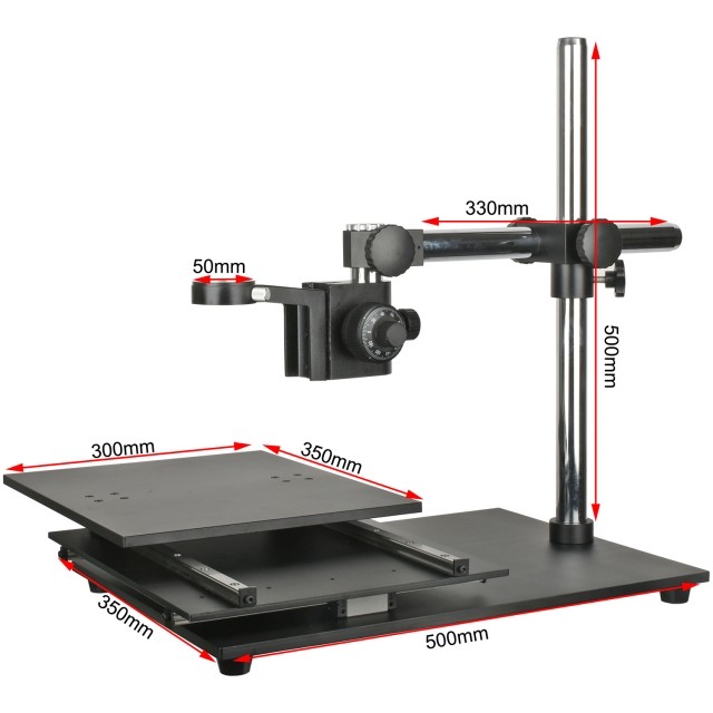参数预览 底座尺寸:350X500X10mm 平台尺寸:350X300mm 导轨:直线滑块导轨 移动行程:X 290 X Y238mm 技术参数 | 型号 | KP-530W | | 底座尺寸 | 350X500X10mm | | 平台尺寸 | 350X300mm | | 导轨 | 直线滑块导轨 | | 移动行程 | X 290 X Y238mm | | 立柱 | 垂直立柱500mm,横臂立柱330mm,横臂移动范围280mm | | 调焦架 | 镜头孔径50mm,中心距离155mm,微调精度0.002mm | | 重量 | 16KG | | 材质 | 铝合金 | 打包清单 : 1、大行程XY移动平台 *1 2、500mm立柱 *1 3、防滑圈 *1 4、横杆 *1 5、转接口 *1 6、吊杆 *1 7、50mm微调支架 *1 |