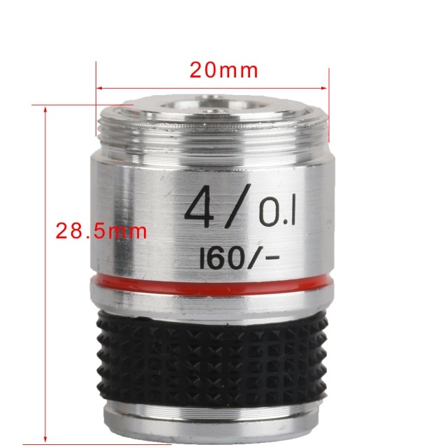 参数预览 1、4X生物显微镜消色差物镜,用于校正黄绿色范围内的球面像差,红色和蓝色正色差。 2、共轭距离185是物镜平面与显微镜系统中物镜的像平面之间的距离。 3、标准RMS螺纹,20mm安装尺寸,购买前确认显微镜的螺纹尺寸。 4、可以消除不需要的反射并增加对比度,提供高质量的观察,无需额外的色差,澄清图像。 5、镜片外壳材质采用铝合金制造,经久耐用,铝合金耐腐蚀.它可以在实验室中使用。 6、物镜长度为28.5mm,使用方便。 技术参数