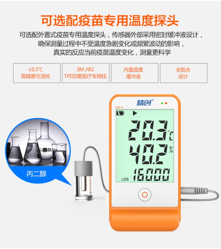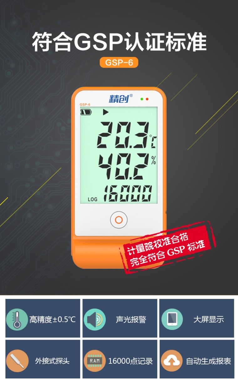 GSP-6温湿度记录仪gsp高精度温度计usb冷藏冷链运输医药柜