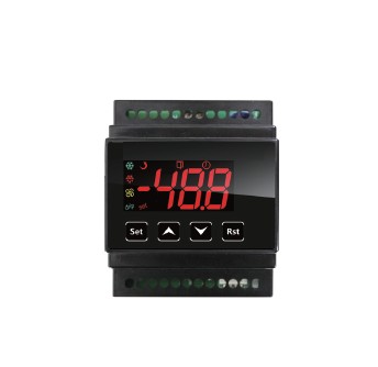● 三路温度传感器用于柜温调节、除霜控制、冷凝器温度监测; ● 一路开关量用于监测柜门动作或用于同步除霜开关信号检测,组成同步除霜网络; ● 多路控制输出可进行压缩机、除霜、风机、灯光/ 外部报警控制; ● 灯光/ 外部报警继电器可通过参数配置,当选择外部报警继电器功能时则可连接远程警铃; ● 完整的热气除霜卸压启动控制逻辑,防止带压启动,从而延长压缩机的寿命; ● 可使用菜单转换华氏/ 摄氏制; ● 控制器具备温度传感器自检功能,检测到故障时具有多种保护和报警方式; ● 拷贝卡功能可快速调整控制器参数; ● 导轨式安装方式。