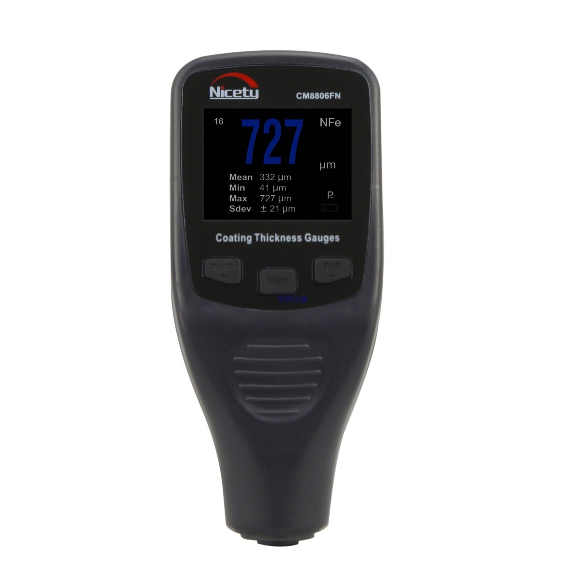 技术参数表: 深圳Nicety利思德CM8806FN 涂层镀层覆层大屏幕彩屏测厚仪 一、产品应用: 油漆涂料、机械、造船、建筑型材及桥梁架构养护、石化管道防腐、工业电镀喷塑、搪瓷、汽车喷漆及二手车交易等行业。 二、产品特色: 1、适用于金属基材上的涂层、镀层、覆层,可精确测量金属表面的油漆、搪瓷、塑料、橡胶、阳极氧化膜以及包括镍铬在内的各种有色金属电镀层的厚度。 视基材而定,每次显示读数时,同时显示字母Fe(导磁金属,如铁、钢)或NFe(不导磁金属,如铝、合金)。CM8806FN测厚仪能自动识别基材。 2、连续测量模式可选。 3、基体薄可达0.3mm。 4、探头接触不良提示。 5、可面板自校准,配校准片 |