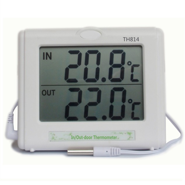 采用高精度温湿度传感器,NTC温度传感器 超大屏幕LCD显示,可视尺寸:84x61mm 摄氏/华氏温度单位转换 测量温度:0至 50℃,分辨率0.1℃,准确度:±1℃(室内) -20至 70℃,分辨率0.1℃,准确度:±1℃(室外) 测量速率:20秒 室外温度探头长达3米