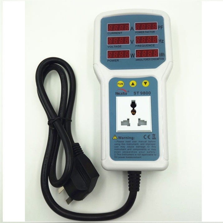 产品描述: 深圳Nicety利思德ST9800便携式智能电量监测仪 用于测量电量(有功电能、电费、二氧化碳)、有功功率、功率因数、负载电流、电压及频率。通过设置电费单价可计算年度电费及二氧化碳排放量。 技术参数表: 深圳Nicety利思德ST9800便携式智能电量监测仪 一、概述: 用于测量电量(有功电能、电费、二氧化碳)、有功功率、功率因数、负载电流、电压及频率。通过设置电费单价可计算年度电费及二氧化碳排放量。 二、功能及参数: 1、 负载电流:0.002~20A 2、 功率因数:0.001~1.000 3、 输入电压:85~265V 4、 电源频率:45~65Hz 5、 有功功率:0.5~4400W 6、 年用电量、有功电能、年用电费、年消耗二氧化碳 7、 仪表插座及电源线大电流:20A,电压:90~260V 8、 机身尺寸:100x200x38mm 9、 机身重量:0.43kg 10、标准配件:说明书,保修卡、彩盒 |