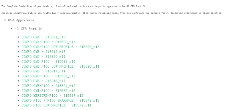 Comfo®呼吸器滤片选型表