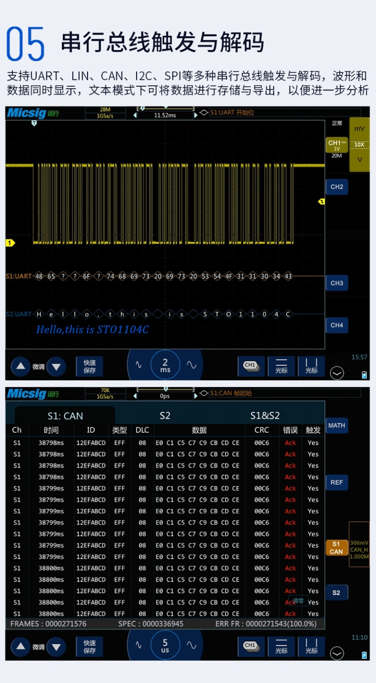 数字智能示波器STO1104C含电池+ HDMI功能+五种总线解码