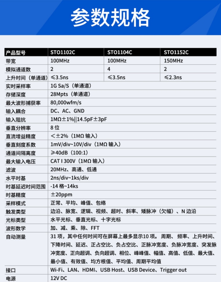 数字智能示波器STO1102C(含电池+五种总线解码+手提包)