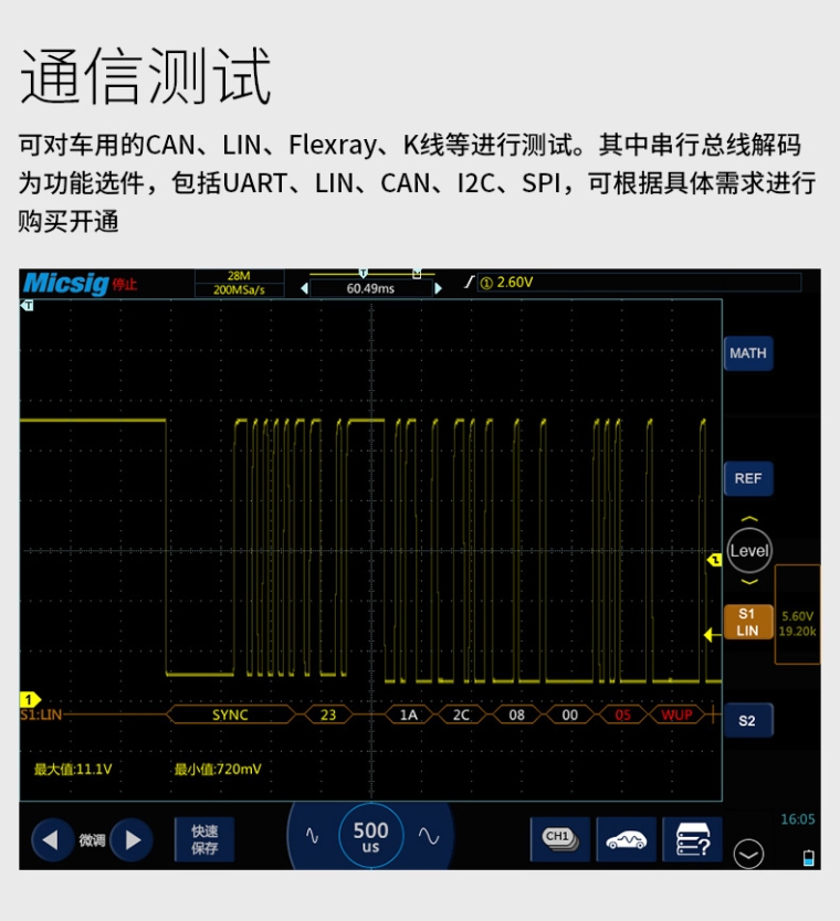 ATO1102+总线解码汽车修理平板触摸示波器CAN通信诊断分析