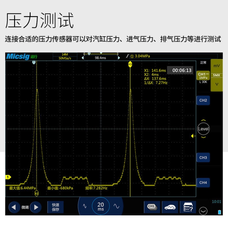 Micsig TO2004平板数字示波器手持便携四通道300M全触控