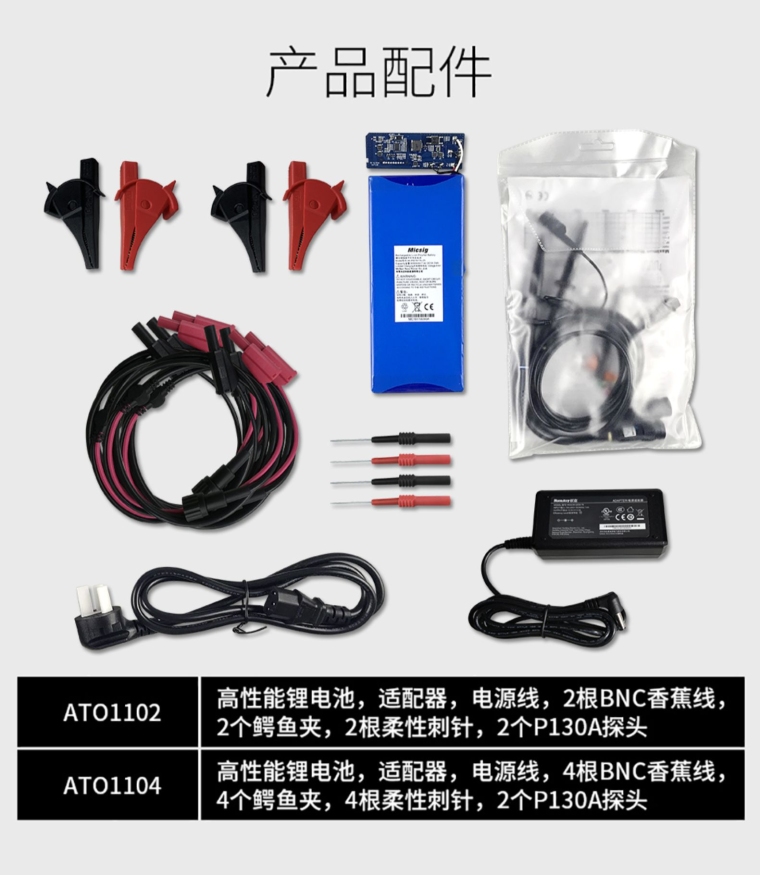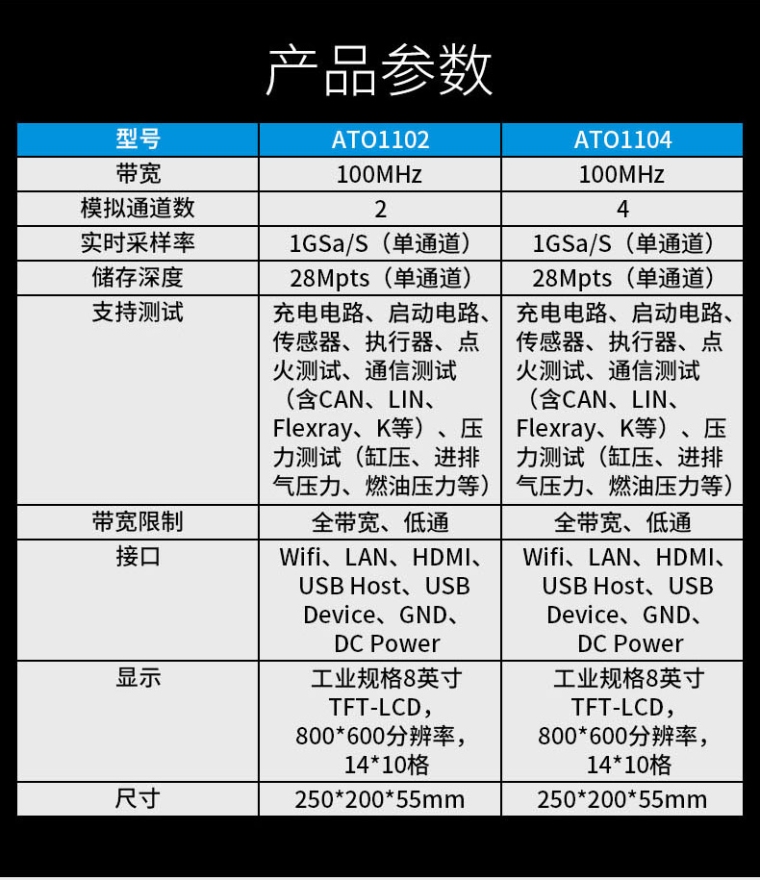 ATO3004示波器(300MHz,2GSa/s,220Mpts,4CH,含电池,CAN\LIN\SPI\UART\I2C解码,汽车示波器标准配件,手提箱