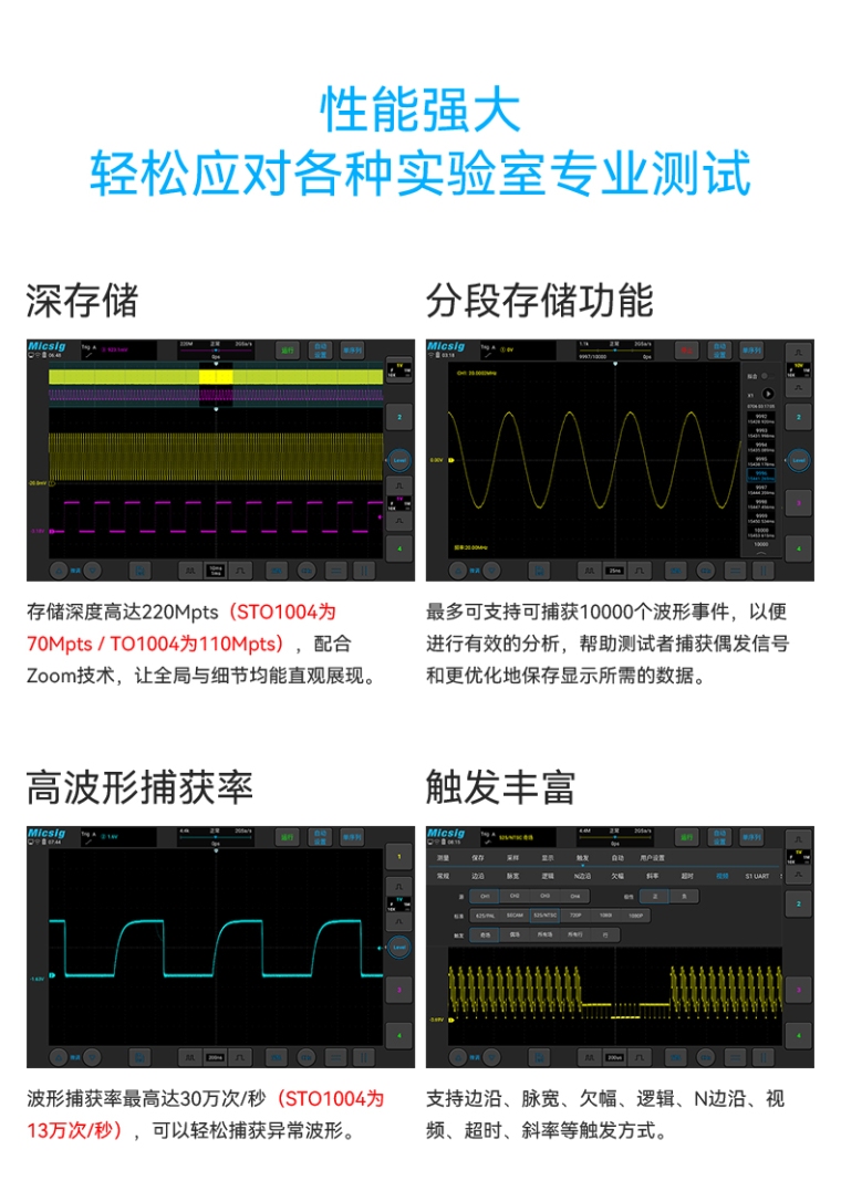 Micsig TO2004平板数字示波器手持便携四通道300M全触控