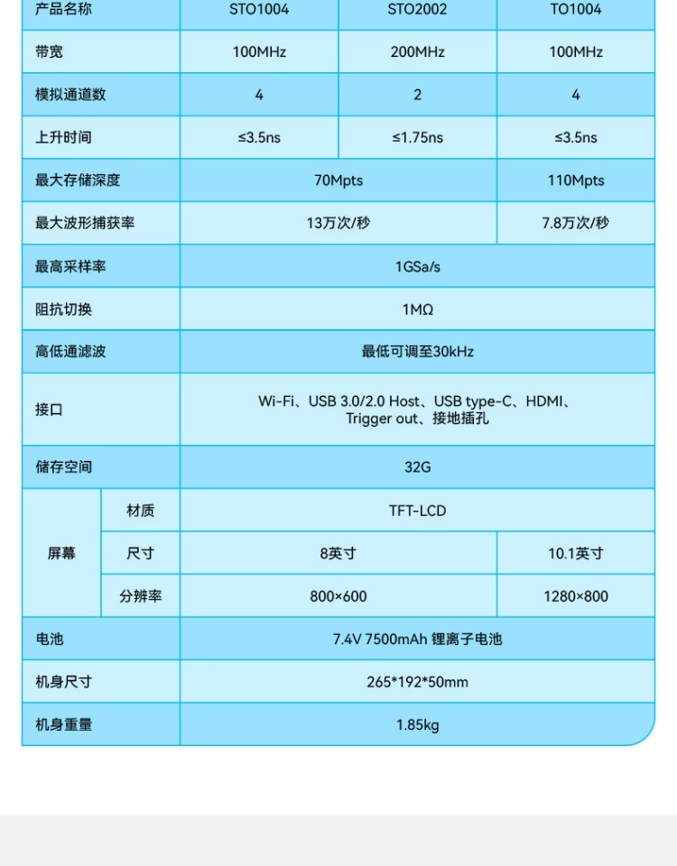 平板示波器TO1104四通道100MHz带宽(不含电池)
