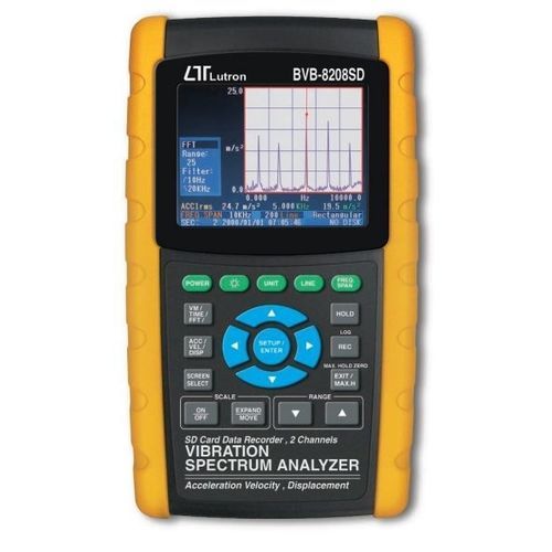 * 振动测量仪模式: 2通道振动测量输入:一个显示屏幕同时显示所有2通道的加速度、速度、位移值。 * FFT分析仪模式 : 1.实时分析频率为10 kHz。 2.时间波形显示和频谱显示,最多可显示1024条频谱线。 3.振动波形数据记录功能。 数据以WAVE文件格式存储在SD存储卡上。 * 内置时钟和日历,将实时数据信息保存到SD存储卡中。 采样时间可设置为2-3600秒。 * 数据文件可以下载到Excel中,不需要额外的软件。 * 波形可以保存为BMP文件,操作简单,对进一步分析很有用。 * 时间信息:年、月、日、时、分、秒。 * 加速度:200 m/s2 速度:200毫米/秒。 位移(p-p):2毫米。 * 最大保持,峰值,数据保持,最大/最小。 * SD存储卡容量:1GB至16GB。 * TFT LCD显示:320 x 240像素,图形LCD。 * RS232/USB计算机接口 * 由DC 1.5V ( UM-3/AA ) x 8颗PC电池(碱性)或DC 9V适配器供电。 |