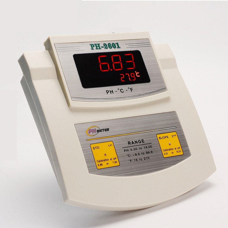 酸度计PH-2601 大屏幕显示,功能齐全,精度高。适用于纯净水生产和饮用、电渡液、锅炉用水、鱼缸用水、游泳池水的洁净度、照相冲洗液、井水,深井水、实验室、水产养殖、食品加工、家庭,办公室、理化教学、电离水 化妆品、市政供水、旅行保健等方面。