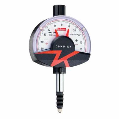 Compika - 比较器仪表 Compika的比较仪具有高度的安全性和精确度。它们是建立在考虑到****的基础上的坚实和深思熟虑的结构。它们是用***的方法制造的。我们的Comparator Gauge Compika比较仪的生产计划具有以下质量特点。 -其设计符合DIN 879-1的要求。这不仅适用于尺寸,也适用于允许的误差范围、滞后和测量压力。 有效的防震系统 -机芯的小齿轮和轴上都镶有宝石。 -取下安全帽后,箱体顶部的调节螺丝可以在整个测量范围内对仪器进行简单安全的调零。 安全帽可防止微调装置无意间转动。 -阀杆和阀芯由硬化不锈钢制成。 -测量主轴由于其精确的导轨,所以非常灵敏。 -额外的超行程有助于将工件插入测量装置中。 -透明的刻度是无阴影的。 -红色的公差标记很容易识别和设置。 -根据要求,我们的所有型号都可以提供0.5N的减压装置。 你需要防水版吗?没问题,我们可以提供! 比较仪 Compika 1001 防震,超程 比较仪Compika 1001是由以下产品制造的。 符合DIN 879-1标准。 精密导向的测量主轴和使用 所选材料的比较器 Compika 1001非常耐磨。 阀杆和阀芯由耐磨的不锈钢制成。 钢的。 |