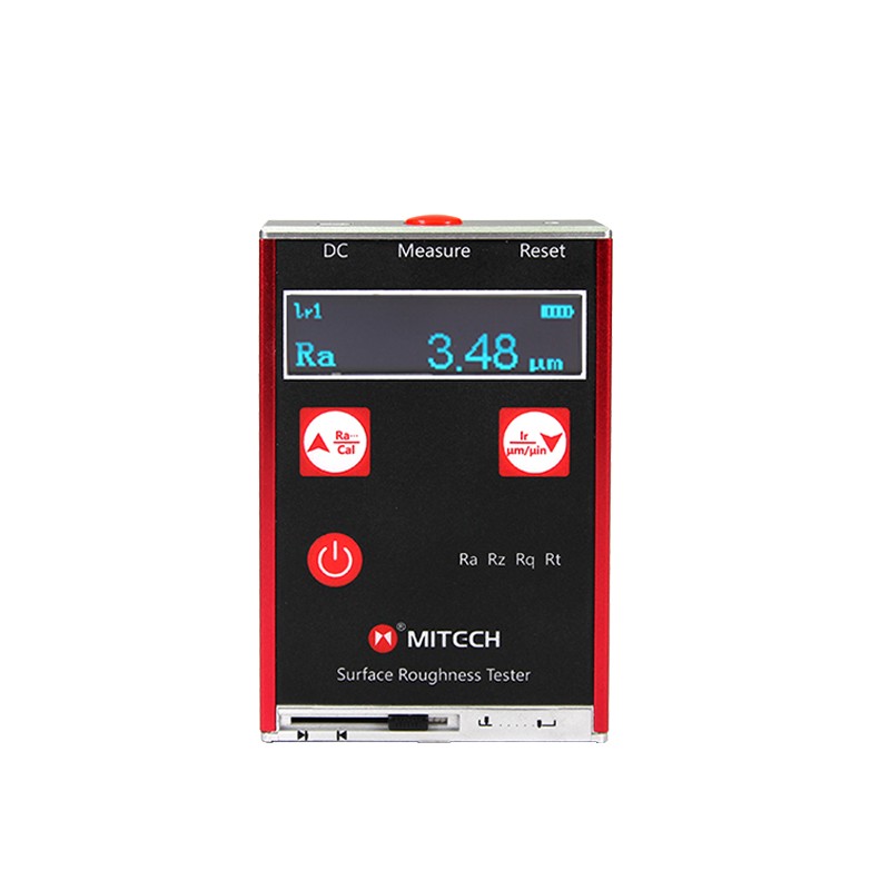 选择好测量参数及取样长度后,即可开始测量。将仪器的测量区域指示标记对准工件被测区域,放稳后轻按仪器顶部的启动键,测头移动,开始测量,总行程为6mm。在“嘀、嘀”两声后,测量结束。 注: 1)在传感器移动过程中,尽量做到使置于工件表面的仪器放置平稳,以免影响该仪器测量精度 2)在传感器回到原始位置以前,仪器不会再响应测量操作,直到一次完整的测量过程以后,才允许再次测量。 仪器的保养与维护 美泰便携式粗糙度仪MR100属精密检测仪器,使用中应特别注意如下事项: 本仪器为精密测量仪器,使用时应轻拿轻放,避免人为因素造成的剧烈冲击及跌落,造成仪器损伤,影响使用; 集成于仪器一体的探头对粗糙的划痕较敏感,日常使用应用力适度,测量粗糙表面时,尽量减少探头在工件表面上的滑动; 探头是仪器的精密部件,切记精心维护。每次使用完毕,要将仪器的测头保护门轻轻关上,以避免对传感器造成剧烈的振动; 随机标准样板应精心保护,以免划伤后造成校准仪器失准。完成测量工作后,请及时将样板放入包装箱内; 根据提示,在电池容量接近用尽时,应及时充电,以免影响使用; 严禁使用伪劣充电器为仪器充电,充电电压不得高于5V,充电电流不能大于1A,适宜的充电时长为3-4小时,避免充电过久; 长时间闲置时,应定期充电(约每月一次); 按键操作时,不宜用力过猛,沾有过多油污和泥水的手指不宜接触仪器; 请勿擅自拆装本仪器,维修相关事宜请与美泰科仪售后部联系。 技术参数