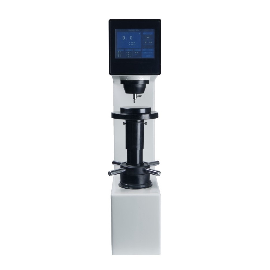 洛氏硬度计工作原理图 需要注意的是,采用不同的压头和试验力测得的硬度值也会不同,因此,洛氏硬度试验依据不同的压头规格和试验力大小规定了多种不同的硬度测试标尺,其中属HRB,HRC,HRA应用最为广泛。 工作条件 操作温度:10~30℃; 相对湿度:≤65%; 周围环境无强烈振动、无强烈磁场、无腐蚀性介质及严重粉尘。 仪器特点 被广泛的应用于多种金属及非金属材料成批零部件高精度的硬度测定; 机电一体化高新技术产品,测试效率高; 多种规格的压头可选,可进行洛氏、表面洛氏全部标尺的硬度测试; 配备高速热敏打印机,可快速打印输出测试数据; 支持布氏、维氏等多种硬度制式之间的数值转换; 采用触摸屏显示界面,显示操作一体化,简单直观,对操作人员的技术要求不高; 配有RS-232C接口,可与计算机串行通讯,供用户扩展功能; 配备性能优良的硬质合金压头或金刚石压头,硬度高、耐磨性强、韧性好,具有耐高温、耐腐蚀性,测量精准、稳定可靠; 采用全自动闭环式压力传感器控制系统,显示瞬时力值,可动态反映加载过程中载荷变化情况; 具有误差值修正功能,硬度值的误差可通过按键输入进行修正,使硬度值更精确地符合测试要求; 具备阈值超限自动报警功能,适用于批量化成品或者半成品工件逐件检测; **环境温度实时显示功能,可避免仪器在温度过高或过低的情况下长时间工作,否则会导致测试误差增大,仪器使用寿命降低; 符合GB/T230.1、GB/T230.2、JJG112、ASTM E18等国内外相关标准。 操作方法及注意事项 仪器的保养与维护 试验人员应严格遵守操作规程,请在试验前后反复采用标准块对仪器进行校对; 若试样背面及边缘出现肉眼可见的变形或痕迹,则试验结果视为无效,应重新选择压头或试验力进行测试; 通常情况下,**测点仅用于抵消各支撑面的间隙,无需记录试验结果,从**点开始统计试验结果; 试验中,需保证相邻压痕中心间距及压痕中心至试件边缘的距离大于 3 mm; 仪器搬运时应托底搬运,禁止横倒,搬运前请拔去电源插头,固定测量杠杆并取下砝码和吊杆; 机器加卸试验力时,严禁转动变荷手轮,如用力旋转会导致内部齿轮错位,试验力出现混乱,甚至造成机器内部件的损坏; 仪器使用完毕后应关闭电源;长时间不使用时应罩上防尘罩,以免灰尘进入机器内部,硬度块、球压头使用后涂上防锈油,防止生锈; 仪器长时间闲置后的再次重新启用,应等待几分钟使仪器内部的电器元件预热后再进行试验,以确保使用精度; 应每年至少一次为仪器做周期性的检定,以保证硬度计的准确性; 请勿擅自拆装本仪器,维修相关事宜请与美泰科仪售后部联系。 技术参数