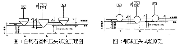 其中,c为常数0.002毫米,K也为常数,当采用金刚石圆锥压时为100,当采用钢球压头时为130。 电动洛氏硬度计试验原理图: 图1 a:加初试验力后 b:加总试验力后 c:卸除主试验力后 图2 a:加初试验力后 b:加总试验力后 c:卸除主试验力后 工作条件 操作温度:25±10℃; 相对湿度:≤65%; 周围环境无强烈振动、无强烈磁场、无腐蚀性介质及严重粉尘。 仪器特点 被广泛的应用于多种金属及非金属材料成批零部件高精度的硬度测定; 采用自动加卸试验力机构,变荷手轮可控制试验力大小,操作简便迅速; 配备电位器,可自行设定保荷时间; 多种规格的压头可选,支持多种洛氏标尺下的硬度测试; 具有多级试验力,测试范围更广,精度更高; 采用高精度机械表盘结构显示硬度值,操作简单,读数方便; 造型新颖、构造坚固、可靠性高、操作简单、读数直观、测试效率高; 主机稳定性好,工件表面质量和人为操作因素对硬度测试结果的影响较小; 配备性能优良的硬质合金压头,硬度高、耐磨性强、韧性好,同时耐高温、耐腐蚀,确保仪器测试值精准、稳定可靠 。 操作方法及注意事项 在使用本仪器前,请仔细阅读使用说明书,详细了解操作步骤和注意事项。避免由于操作不当而造成仪器损坏或发生人身安全事故; 试硬度计应当在温度为25±10℃,清洁无振动的环境中使用; 硬度计长时间不用时,应用防尘罩将机器盖好; 定期在丝杠与手轮的接触面注入少量机油; 如发现硬度计示值误差较大,(1)可拿下工作台检查其与丝杠接触面是否清洁;(2)检查丝杠保护套是否顶起工作台;(3)检查压头是否损坏; 用本机配带的标准硬度块定期检查硬度计示值精度。将工作台面及标准块擦净,在硬度块工作面上进行试验,决不允许在支撑面上试验。若示值误差较大,应检查标准硬度块支撑面是否有毛刺。若有毛刺应用石油打光。在标准块不同位置试验时,硬度块应紧贴工作台面拖动,严禁拿离工作台。硬度计的示值调整:若通过以上工作,硬度计示值误差仍然较大,可通过调整板调整前后位置,以达到示值精度要求,方法参照3.2调试校准; 请勿擅自拆装本仪器,如有其它方面疑问及时与我司联系咨询,美泰科仪售后部。 仪器的保养与维护 技术参数
