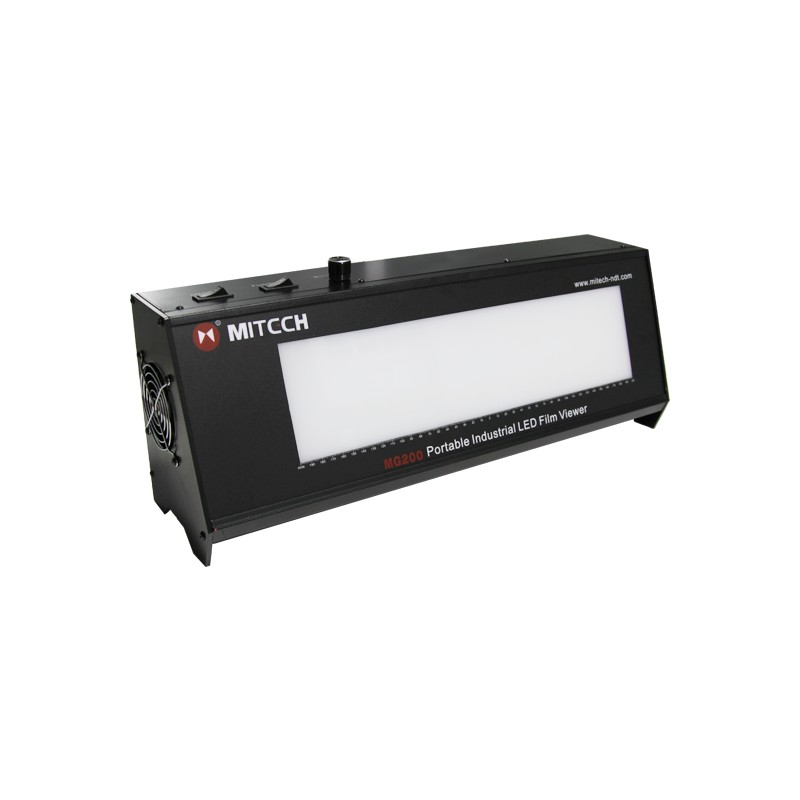 美泰MG200便携式LED观片灯,可针对X光片进行逐一查看。其采用大功率LED面光源、亚克力材质观察屏,性能稳定、构造坚固、均匀度高、操作简单,可人性化限定LED色温、无极调光,能够更好的满足使用需求,被广泛的应用于X射线探伤进行底片观察和评定,是提高生产效率、节约生产成本必备的专业精密检测仪器。 功能用途 广泛应用于工业检测领域的射线底片观察及评定。 工作原理 LED观片灯的原理是将含有影像信息的胶片固定在观察屏上,由内光源发出光线经观察屏散射透过胶片,观看胶片上试样是否存在缺陷,根据相关标准确定试样合格与否。 工作条件 工作温度:-10℃~45℃; 相对湿度:≤85%; 周围环境无腐蚀性介质; 周围环境无强磁场干扰。 仪器特点 广泛应用于工业检测领域进行射线底片观察和评定; 采用大功率的LED光源,亮度高、均匀度好; 精巧设计、坚固耐用,适用于野外流动性场合工作; 采用亚克力板观片屏,透光性好,漫散射性能强,持久耐用; 可清晰观看4.5D以上黑度底片上的微小缺陷,满足日常使用需求; 限定LED的色温8000K以内,不伤眼,长时间使用不易疲劳; 通过低压电子脉宽调制方式,可实现亮度无级调光,更能保障使用者的安全; 采用先进的恒流驱动方式,大大延长了使用寿命(长达50000小时以上); 具备脚踏模式和手动模式,满足不同工作习惯,节能环保; 符合JB/T4730-2005《承压设备无损检测》、GB/T 19802-2005《工业射线照相底片观片灯》等国内外相关标准。 操作方法及注意事项 仪器的保养与维护 在使用本仪器前,请仔细阅读使用说明书,详细了解操作步骤和注意事项,避免因操作不当而造成的仪器损坏或人身安全事故; 请勿遮挡LED观片灯通风口,避免仪器过热,造成损毁; 运输移动LED观片灯时,应避免剧烈震动,以免损坏内部器件; 使用完毕后,请将遮光板收好,防止遮光板丢失,影响日后使用; 连线设备时,应小心谨慎,力度适中,切勿猛插、硬拽; 请勿擅自拆装本仪器,维修相关事宜请咨询美泰科仪售后部。 技术参数