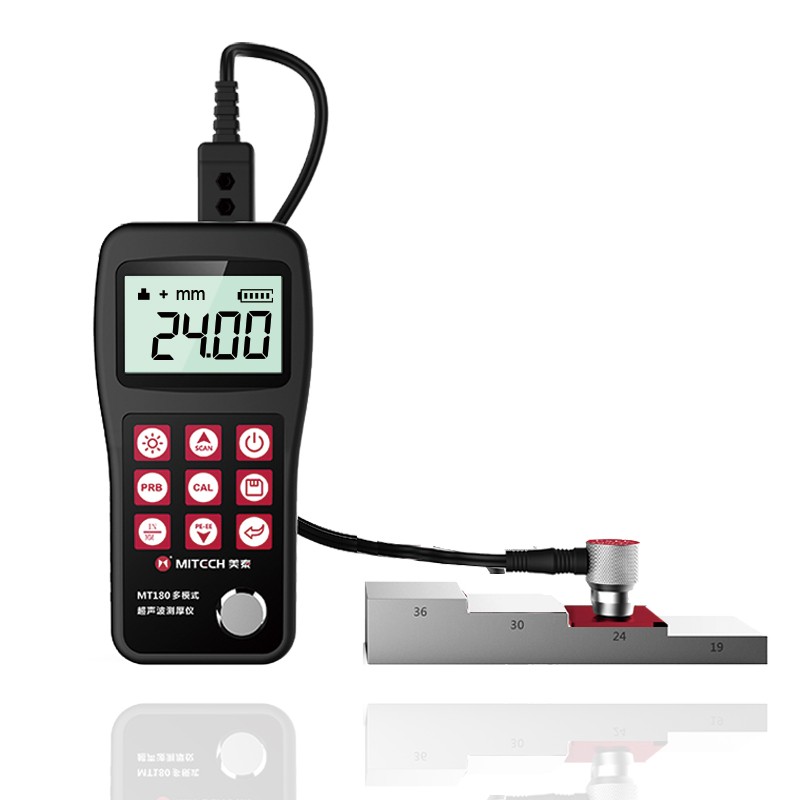 美泰MT180 超声波测厚仪,基于超声波测量原理,可对金属、塑料、陶瓷、玻璃及其他多种超声波的良导体材料进行厚度测量,也可实现对材料声速的反测。与传统的测量方法相比,超声波测厚仪的优势在于它只要接触到被测工件的一面即可完成测量,其独特的可穿透涂层测厚度的性能为表面涂有油漆或防腐材料的工件厚度检测提供了更加高效的解决方案,测量前无需处理掉表面的涂层,直接亦可测量。被广泛应用于石油、化工、冶金、造船、航空、航天等领域的生产设备中各种管道及压力容器腐蚀减薄程度的监测,也可用于对各种板材及各种加工零件做精确的测量。是提高生产效率与合格率、节约成本必备的专业精密仪器。