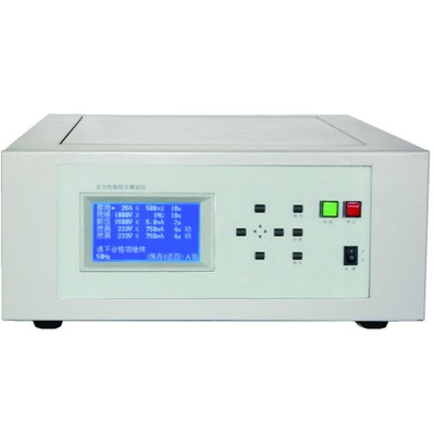 一、功能特点: 1、满足GB4706.1、GB4943、GB7000.1、GB3883.1和GB/T12113等中华人民共和国国家标准以及IEC60335-1、IEC60950、IEC60598-1、IEC60745-1和IEC60990等国际电工委员会标准的要求; 2、2%测试精度; 3、耐压、绝缘、接地、泄漏、四项联合测试; 4、CPU技术升压升流,50/60HZ双频率测试,满足国内/出口产品的测试要求; 5、大屏幕、宽视角液晶显示(中文或英文),人性化的人机界面; 6、PLC遥控,RS232/RS485(选配)通讯接口; 7、预置报警功能,报警讯息自动提示 8、智能记忆分析功能、系统自检功能和自动保护功能。 二、详细技术指标: 产品规格:9656A 输入电压:220Vac±10% 输入频率:50/60Hz±5% 保险丝:Fuse 5A/250V 交流耐压测试: 额定输出负载:100VA(AC5000V/20mA),可扩展至500VA |