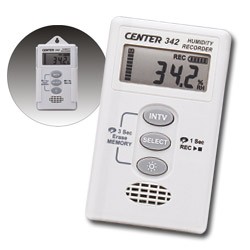 CENTER342温湿度记录仪 量程范围 | 湿 度: 5% ~ 98%R.H. 温 度: -30℃ ~ +70℃ | 分辩率 | 0.1%R.H ,0.1℃, 0.1℉ | 准确度 | 温度±0.7℃ | 采样时间 | 2秒-60分可调 | 尺寸 | 记录器92mm(L)x55mm(W)x21mm(H)/ 挂座106mm(L)x59mm(W)x25.5mm(H) | 重量 | 80g | 供电电源 | 3V,两节1.5V电池 | 附件 | 电池,使用说明书,RS232接线,软件,挂座 |