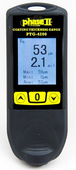 Phase II涂层测厚仪PTG-4200可通过电磁感应及电涡流两种不同测量原理进行涂层测厚。 无损测量,精确可靠。 此外,这种新型的涂层测厚仪采用一体式内置探头,可以测量磁性金属机体上的非磁性涂层厚度或非磁性金属基体上的非导电涂层厚度。 PTG-4200可应用于多工业领域测量,包括汽车业、制造业、通用机械工程、商检等。 涂层测厚仪PTG-4200主要技术参数: