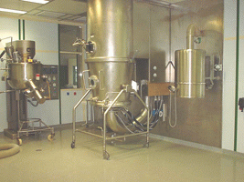 混合:所有可流化沸腾的物料,如粉末、颗粒、挤出物、微丸等都可在本设备中得到均匀混合,由于空气的立体运动