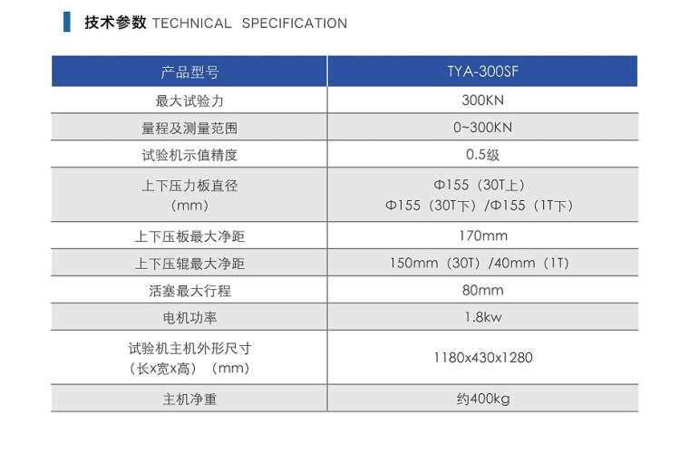 本试验机是采用了液压动力源驱动,计算机数据采集处理,可实现闭环控制及自动检测的高精度材料试验设备,其由试验主机、油源(液压动力源)测控系统、试验器具四部分组成,最大试验力300kN/10kN,试验机准确度等级优于1级。 本试验机能按照相应国家标准进行加荷速率设置并满足标准加荷速率控制指标对水泥等建筑材料进行恒加载试验力的抗压试验,以及混凝土抗折试验具有负荷、时间及试验曲线动态显示以及及时控制功能和最大试验力保持功能 本试验机是主机油源一体结构,工作空间为一体式,试验结果更加精准可满足水泥胶砂抗折试验,抗压部分适用于水泥胶砂的抗压试验,配以适当的夹具和测量装置可满足混凝土的抗折试验。