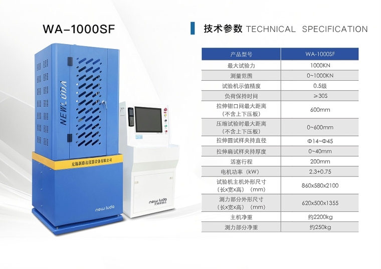 本机型电液伺服万能试验机是采用了液压动力源驱动,电液伺服控制技术,计算机数据采集处理,可实现闭环控制及自动检测的高精度材料试验设备,其由试验主机、油源(液压动力源)、测控系统、试验器具四部分组成,最大试验力2000kN,试验机准确度等级优于1级。 本机型电液伺服万能试验机是一款通用性较强的产品,可以满足国家关于金属拉伸试验规定中的各项标准试验,也可以按照其它标准实现对不同材料或产品的拉伸、压缩、弯曲、剪切等类型的试验,可以求取所测材料的抗拉强度、屈服强度、规定非比例延伸强度、弹性模量等性能指标,可实现等速率加荷、等速率变形、等速率位移、等速率应变等闭环控制,可以进行材料或产品的工艺合格性能验证试验。 该试验机是双空间结构,上横梁与下横梁之间为拉伸空间,下横梁与试台之间为压缩空间,试验空间通过链轮和丝杆旋转带动下横梁上下移动来自动调整。上下横梁上装有液压控制的夹持钳口,标准机型配有V型和平面型钳口用于夹紧圆柱试样和平板试样做拉伸试验;标准机型的下横梁底端配有上压板,试台上配有带球形结构的下压板,可直接做压缩试验。