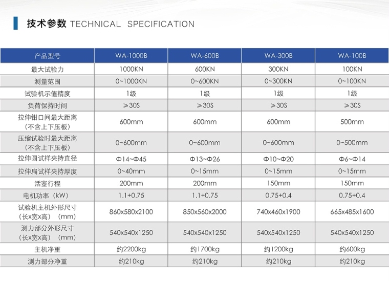 产品名称 电液式万能试验机(数显)WA-600B 电液式万能试验机(数显)WA-300B 电液式万能试验机(数显)WA-100B 产品介绍