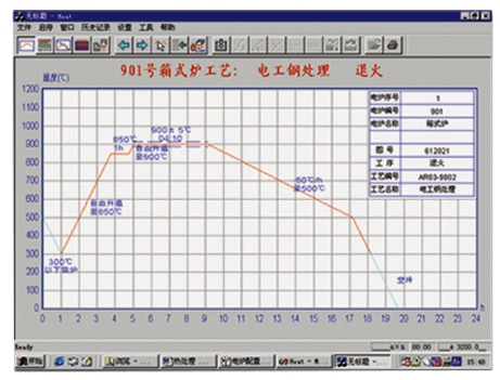 PR1010系统应用于工业热处理、铸锻车间各种工业电炉(如箱式炉、并式炉、台车炉、罩式炉、真空炉等)按照工艺要求进行集群式自动控制。既适用于新建项目的电炉设备配套,又适用于传统热处理车间的技术改造。 产品特点 1、可控制1~32台电炉,支持同一台电炉的多温区同步调节,大幅度降低多温区电炉控制的复杂程度。 2、简化操作步骤,温度工艺设置通过计算机进行图形化设置、管理和操作,避免了繁琐的仪表操作。 3、独立的工艺文件管理数据库系统,可便捷的实现对工艺文件的增加、删除、修改、查询等工作。 4、替代记录仪,自动记录过程控制曲线,除温度曲线外,可选择工艺设定曲线和控制调节记录曲线。对各台电炉、各台智能仪表的工艺控制均有独立的记录曲线,记录文件可长期保存作为历史记录供随时调阅、打印。