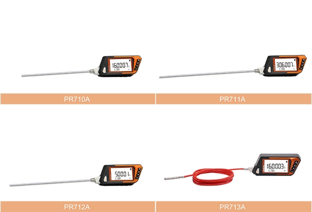 PR710系列精密数字温度计具有高准确度、高稳定性的特点,是为温度计量行业量身订制的精密测温仪器。测量范围覆盖-80℃~300℃,可直接通过液晶屏显示温度值,并具有丰富的人机交互及通讯功能。PR710系列产品体积小巧、便于携带,非常适合于实验室及现场使用。 产品特点 ■ 优异的测量准确度 通过使用内部的标准电阻进行自校准,PR71系列产品具有优异的长期稳定性,全系列产品的年变化均优于0.05℃, PR712系列产品的年变化更是可达0.01℃。 ■ 极低的温度系数 在-10℃~60℃温度范围内具有低至1ppm/℃的温度系数。工作于热源上方时,热源温度对其温度示值的影响微乎其微。 ■ 分辨力0.001℃ 电测功能可媲美常用的七位半数字万用表,可在0.001℃分辨力的条件下实现稳定读数。 ■ 可溯源至其他温度标准器 在获得授权的情况下,使用上位软件或者自身提供的校准功能,可以溯源至标准铂电阻等温度标准器。溯源后其测温示值能够长期与标准器保持一致。 ■ 内置重力感应,屏幕可自动翻转 具有水平及垂直两种显示模式,并可通过重力感应实现两种显示模式的自动转换,使得其在实际使用过程中易于读数。