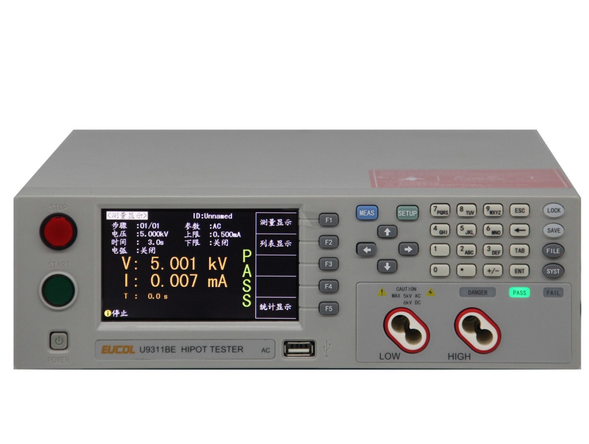 U9311E系列交直流耐压绝缘测试仪是一款小功率经济型智能安规测试仪器。具备接触检查和电弧侦测功能,体积小、重量轻、外观美观、操作简便。U9311E系列产品可广泛应用于家用电器、充电器/适配器、绕线元件、电器设备及元器件的安全性检查。