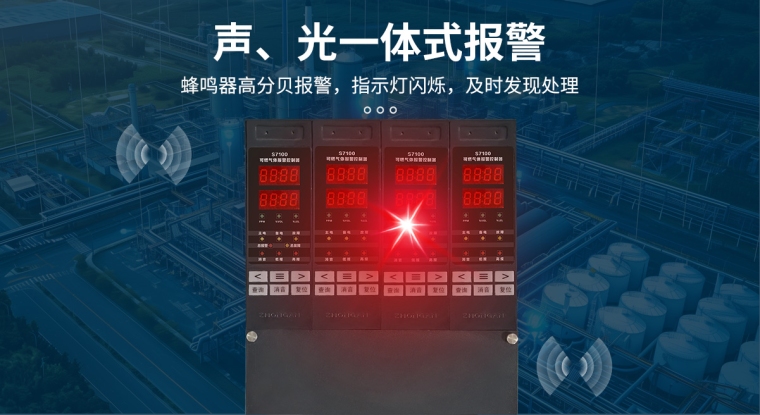 多点监控气体报警器,用于检测环境空气中待测气体的浓度,当环境中检测到待测气体的浓度达到或超过预置报警值时,控制器立即发出声光报警,启动执行设备来控制驱动排风或其它外控设备,防止中毒事故、爆炸、及火灾发生,从而保障生命、财产的安全