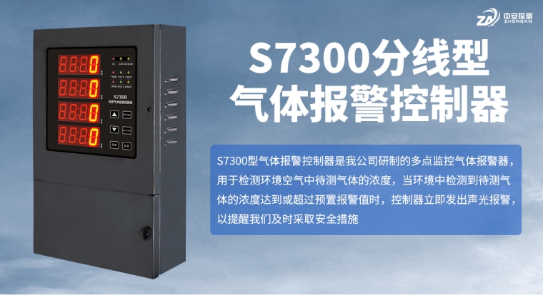 S7300型气体报警控制器是我公司研制的多点监控气体报警器,用于检测环境空气中待测气体的浓度,当环境中检测到待测气体的浓度达到或超过预置报警值时,控制器立即发出声光报警,以提醒我们及时采取安全措施,并启动执行设备来控制驱动排风或其它外控设备,防止中毒事故、爆炸、及火灾发生,从而保障生命、财产的安全。控制器采用模块化点对点结构设计,现场操作简单、更换方便,便于用户使用和维护。