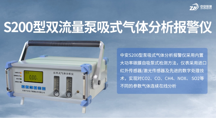 中安S200型泵吸式气体分析报警仪内置大功率碳膜自吸泵式红外检测原理,仪表采用进口红外传感器及先进的数字处理技术,实现对CO2、CO、CH4、NOX、SO2等气体的连续在线分析